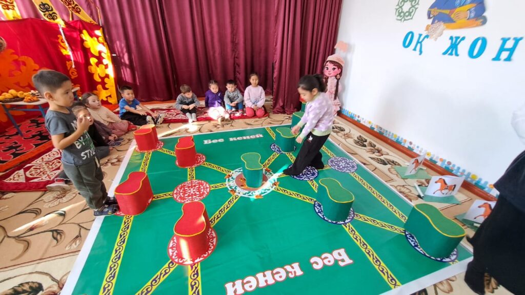 Мазмұны: мектепке дейінгі балалардың даму деңгейін толыққанды мотивациялық негізін қалыптастыру үшін ойынның маңызы өте зор. Ойнатылатын ойындар — ұйымдастыру талаптарына сәйкес болуы тиіс. Технологиялық жүйе, ғылыми база, жүйелілік, басқарылуы, тиімділігі,жаңадан өндірілуі. Ойынды таңдау балалардың қызығушылығын танытып,ойынға белсенді әрекет етеді және нәтижесін алады.Ойынның басты компоненті-педагог пен балалардың тікелей және жүйелі қарым-қатынасы. Балабақшамызда балалардың ұлттық тұлғасын қалыптастыру мен дамыту үшін ең алдымен оның жас және дербес ерекшеліктерінің психологиялық-педагогикалық негіздерін есепке ала отырып,ұлттық тәрбие  беруді ұлттық психологияның негізгі ұстанымдарына сәйкес жүзеге асырамыз. Дидактикалық ойындар арқылы ұлттық құндылықтарды дәріптейміз. Танымдық-дамытушылық ойындарды ойлап табу ұйымдастырылған іс-әрекетінде баланың танымдық,зияткерлік дағдыларын дамытады. Сондай-ақ қазіргі таңда этно мәдени білім беру жүйесі арқылы балаларымызды дамытудамыз. Этно мәдени білім беру — мектеп жасына дейінгі балалардың шығармашылығын дамытатын мүмкіндіктер,ұлтымыздың бай мәдениеті, ұлттық болмысы, тарихы, тілі, ұлттық құндылықтар туралы білім беріп, жан-жақты, Отанын сүйетін, адамгершілігі мол, рухы биік, жаһандық өркениеттің халықтарына төзімді жеке тұлғаны тәрбиелеу. Олай болса, бүгінгі ұрпағымызды халқымыздың баға жетпес бай салт-дәстүрі негізінде тәрбиелеу, ұлттық құндылықтарымызды бойына сіңіру біздің басты мақсатымыз.  Қазіргі таңда сол мақсатқа қол жеткізу үшін біздің балабақша әйгілі Мария Монтесорри технологиясын этномәдени білім беру жүйесімен ұштастыра отырып, этно стильдегі дамытушы орта құруда